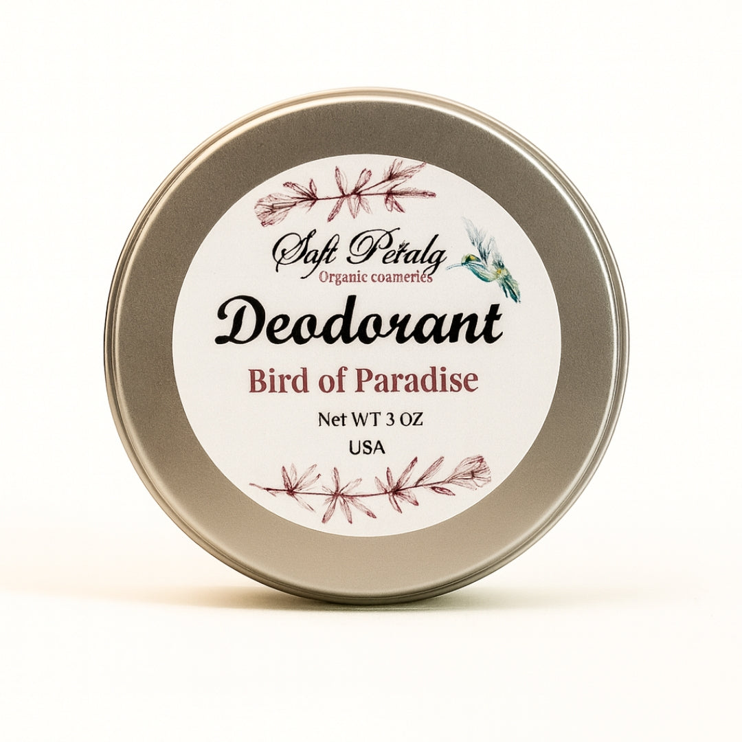 Stay fresh naturally with our Bird of Paradise Organic Deodorant. Formulated with organic ingredients, this gentle, aluminum-free deodorant provides effective odor protection throughout the day. It features a bright, exotic, and uplifting "Bird of Paradise" scent to keep you feeling confident and tropical, without harsh chemicals.