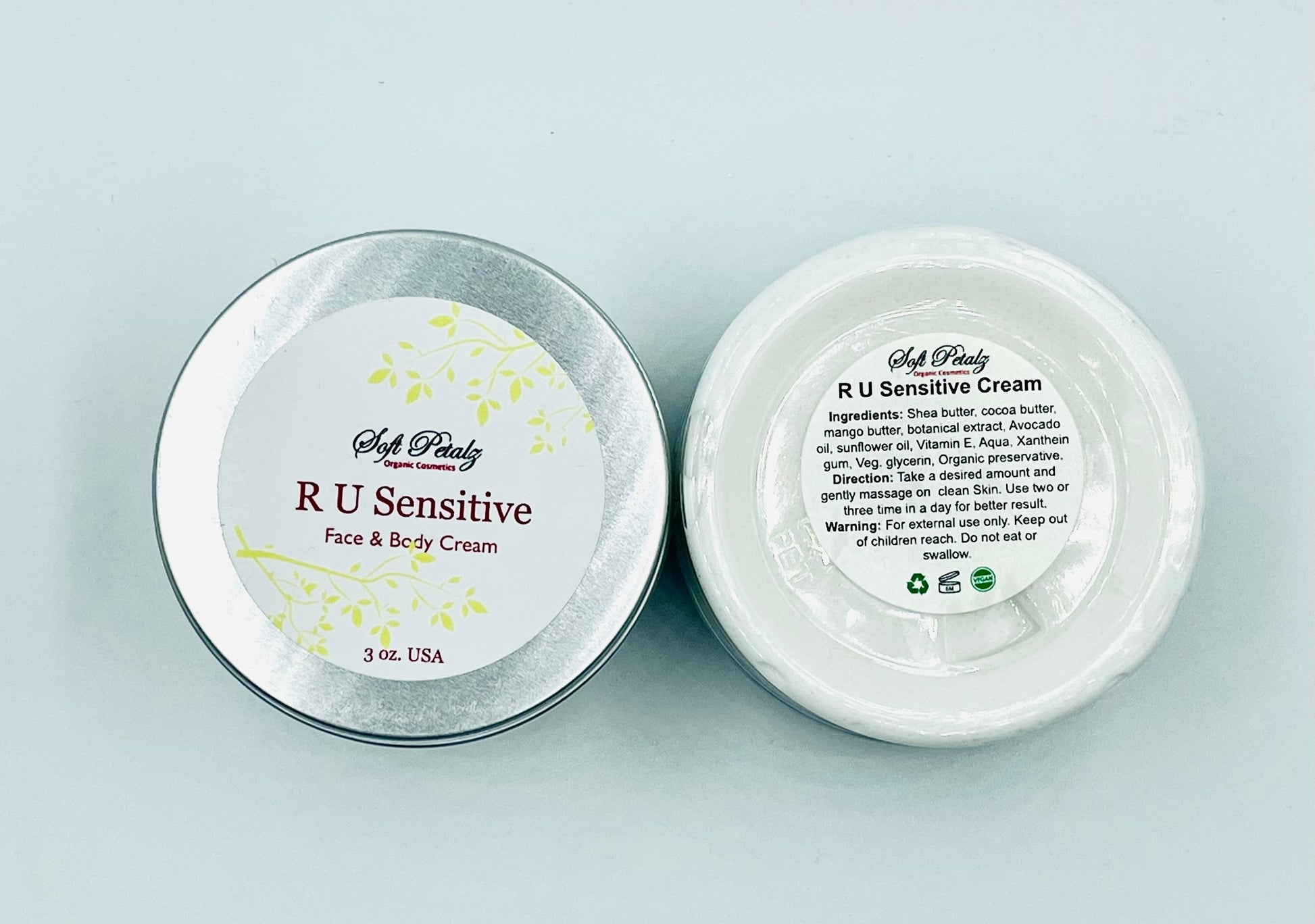 Our R U Sensitive Face & Body Cream is a gentle, organic solution specially formulated for the most delicate and sensitive skin. This unscented, hypoallergenic formula provides deep, soothing hydration without irritation, helping to calm, balance, and nourish skin that reacts easily. Perfect for daily use, leaving your skin comfortable, soft, and protected.