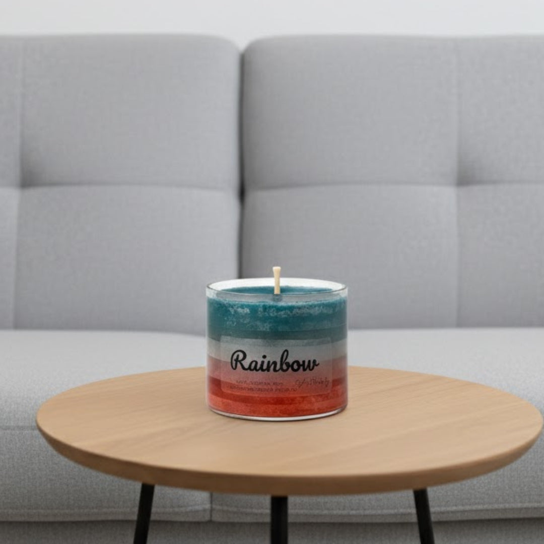 Illuminate your space with our Rainbow Scented Candle, a masterfully crafted blend designed to elevate your ambiance. Each candle features a carefully curated fragrance profile that evolves as it burns, delivering a sophisticated sensory experience. Hand-poured with premium ingredients, this candle offers consistent, long-lasting performance and an even burn. Perfect for creating a refined atmosphere in any room, whether you're seeking relaxation, focus, or simply a touch of elegance. Transform your environment with this essential addition to your home fragrance collection.