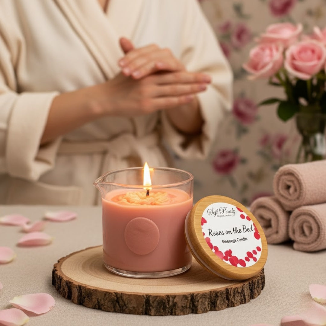Rose on the Bed is a luxurious massage candle infused with delicate rose petals and nourishing botanical oils. As it melts, the warm wax transforms into silky massage oil that glides effortlessly across skin, releasing soothing aromatics that calm the mind and ease tension. Perfect for intimate moments or personal self-care rituals, this candle combines the therapeutic benefits of massage with the romantic essence of fresh roses. Simply light, let the wax pool, and experience the sensory indulgence of spa-quality relaxation at home.